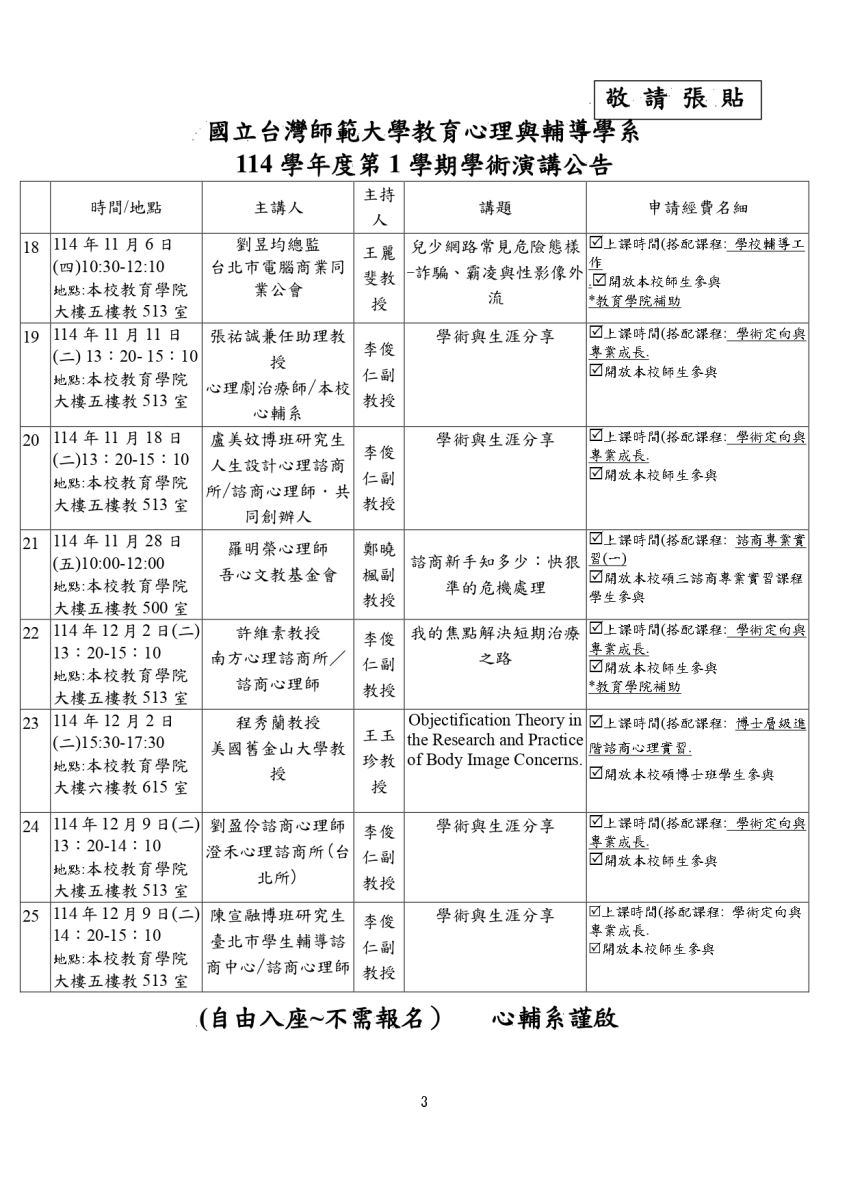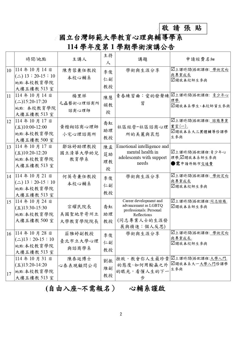 114-1學期_心輔系_學術演講公告_參見附檔( 自由入座~不需報名)